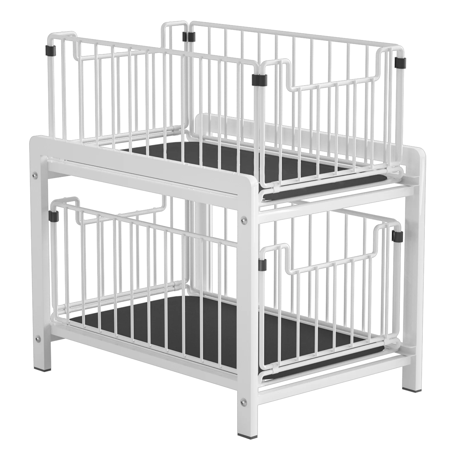 Raft metalic, organizator articole, 2 sertare pe sina, 26×38.5x37cm, Alb