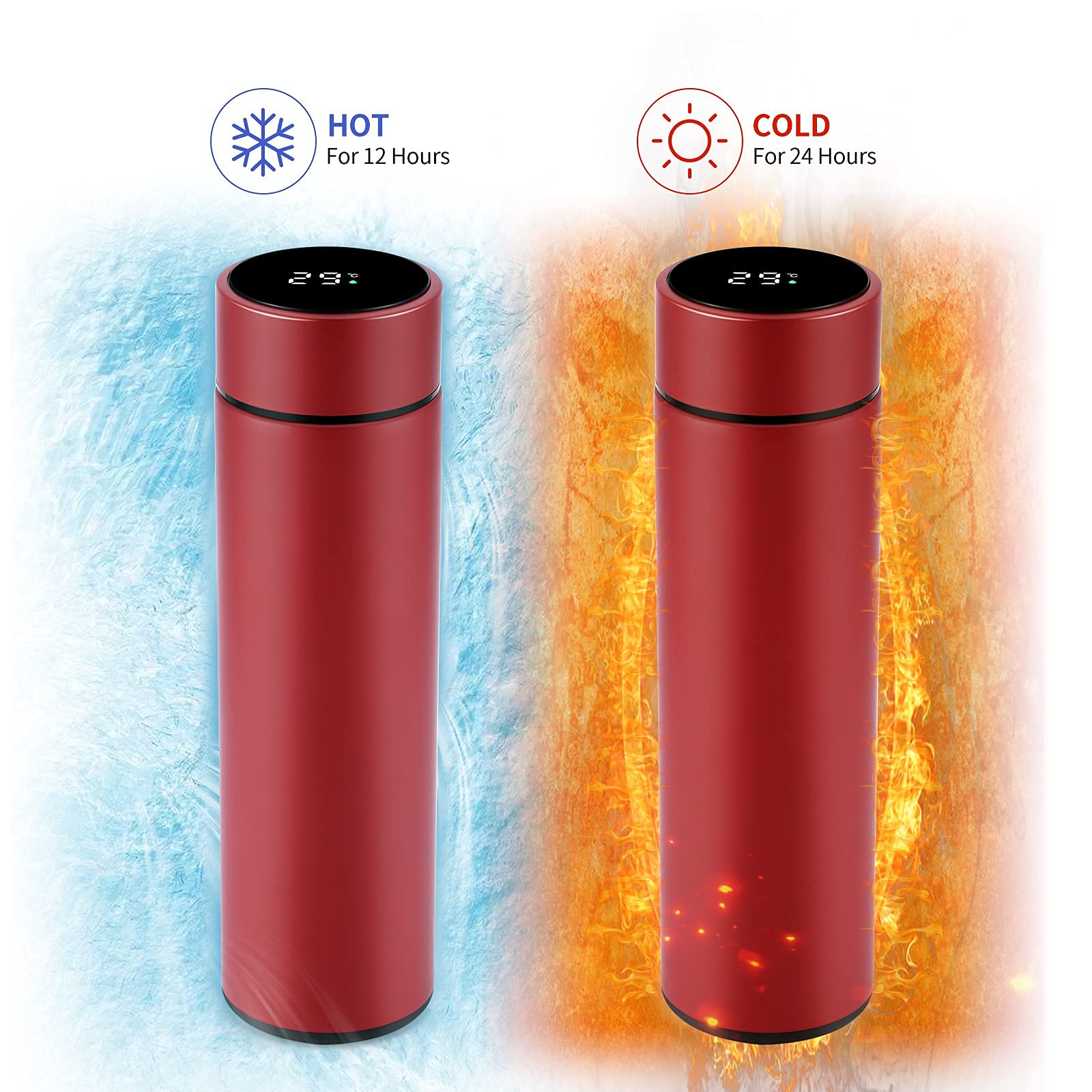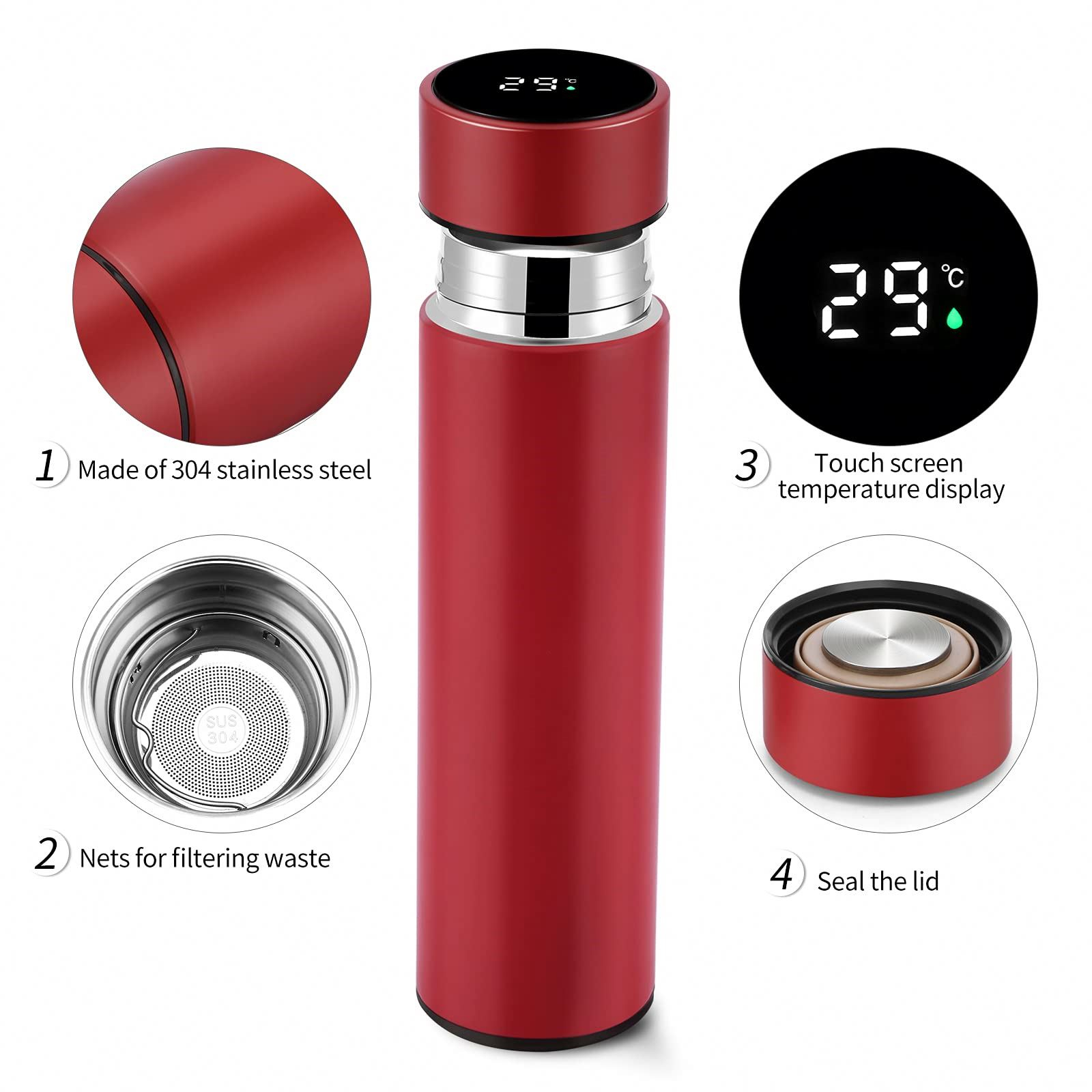 Termos cu afisaj led temperatura , 500 ml, Rosu, otel inoxidabil